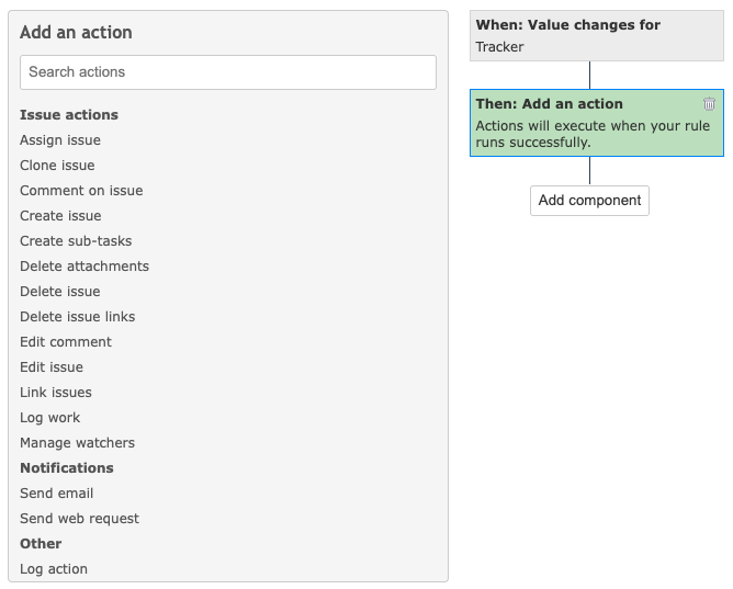Actions define what happens when an automation is triggered. Multiple actions may be combined in a single automation.