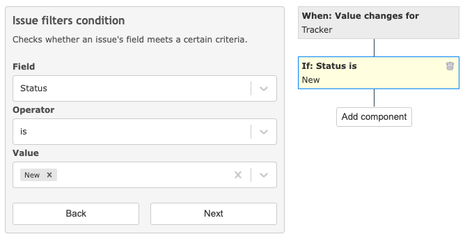 Issue field values (e.g., “priority = High”).